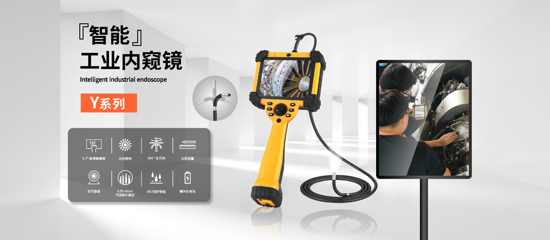 Y系列6mm直徑工業(yè)內(nèi)窺鏡,搭載智能操控系統(tǒng),6mm探頭直側(cè)一體雙鏡頭,后置LED光纖導(dǎo)光,照明更清晰,耐磨鎢絲管可360°全方位旋轉(zhuǎn),航空制造業(yè)檢測(cè)專用,可檢測(cè)飛機(jī)活塞發(fā)動(dòng)機(jī)氣缸內(nèi)的積炭、燃燒室壁的橫截面以及門閥的情況,還可檢查渦輪發(fā)動(dòng)機(jī)的渦輪葉片、噴嘴導(dǎo)流葉片,以及外來物損傷。